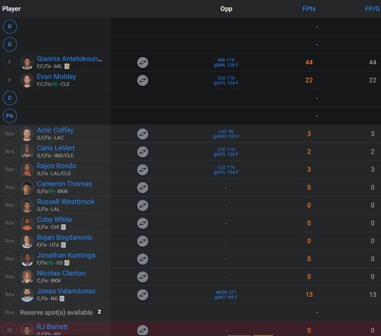 It most closely resembles “Game Pick” on the Sleeper app, but greatly improved to allow you to get more out of your choices each week. Instead of selecting one game for each starter at the beginning of the week, Game Peak allows you to start your best players every single game UNTIL you decide to lock them in with a score. Meaning, if you own Giannis and he plays Mon-Wed-Fri this week, you can start him right away on Monday even if you think his best game might not come until Friday. If he performs well on Monday, you can lock in that score for him, which would now prevent you from starting him the rest of the week. If you would rather see if he can do better on Wednesday, you can toss out his Monday performance and continue to start him in the next game. It is all up to you as the owner to decide when and when not to lock in players throughout the week.