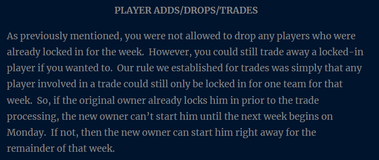 Anyone can clearly see that even when it comes to some of the more specific league rules like trades, they felt mine was good enough for them so they copied it exactly.