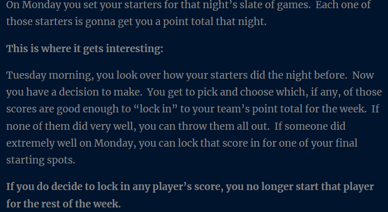 As you can clearly see, they made the adjustments to add more strategy, as well as allow you to pass up a player score for a potentially larger future score, which is the basic essence of my format that was created over a year before Sleeper introduced it. Also worth noting is the fact that I was considerate enough to acknowledge Sleeper and their Game Pick creation when describing my new format. Even though the two formats were still different enough at that time, I felt it appropriate to recognize that both exist. Meanwhile, Sleeper has decided to just pass their new mode off as their own idea when it clearly wasn’t.