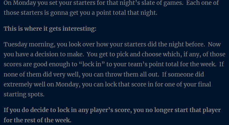 Frankly, I’m not entirely sure how I’m supposed to feel about this blatant mimicry. On one hand, I was hoping that an established site would be willing to adopt the Game Peak Mode format so I would no longer have to do so much manual work in order for our league to function (I do not have a background in programming nor do I have the know-how to create my own fantasy basketball app). On the other hand, I guess I expected it to happen in a more honest way. Straight-up plagiarism wasn’t the way I envisioned it. Just give credit where credit is due, Sleeper.
