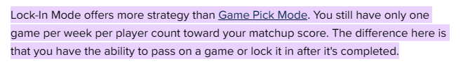 I recently discovered that the Sleeper app added a new mode alongside their existing Game Pick format and gave it the name Lock-In Mode.